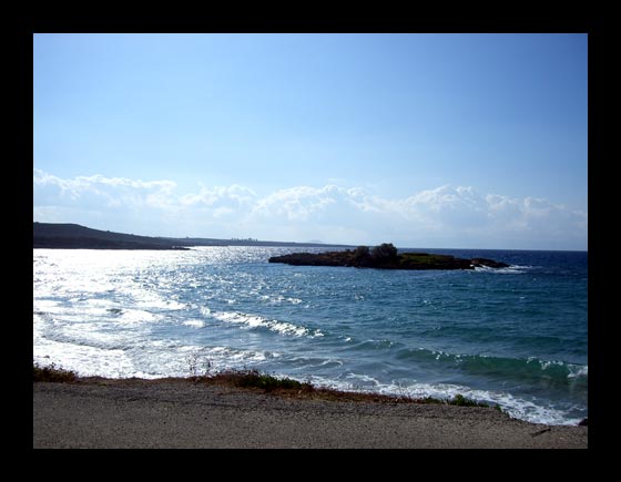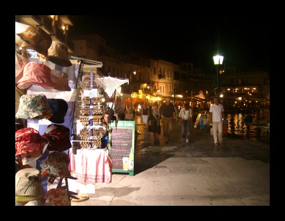 Donnerstag, 28. September, späterer Abend - wir flanieren über Chanias Hafen, schauen uns Läden an und trinken überteuerten Frappé in einem Hafencafe. Am Freitag, 29. September sind wir auf Akrotiri, das ist der Knubbel rechts oben (siehe Karte) von Chania und schauen uns dort mal um. |