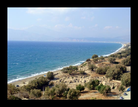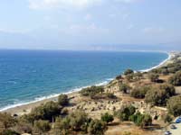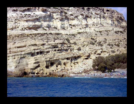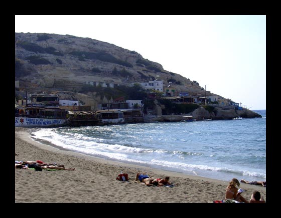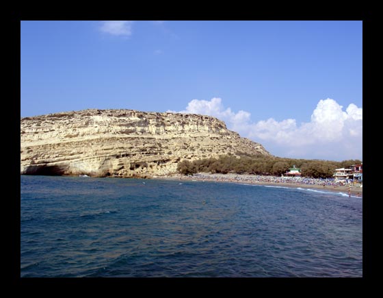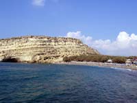Am Freitag, 22. September - die zweite Tour, wir fahren in den Süden. Über Rethimnon, Spili, Ag. Galini geht's nach Matala. Hatten sich hier einst Hippies in den Höhlen niedergelassen, herrscht heute Tourirummel. Wir sehen uns kurz um und suchen dann den Komo Beach etwas nördlich von Matala auf. |