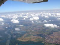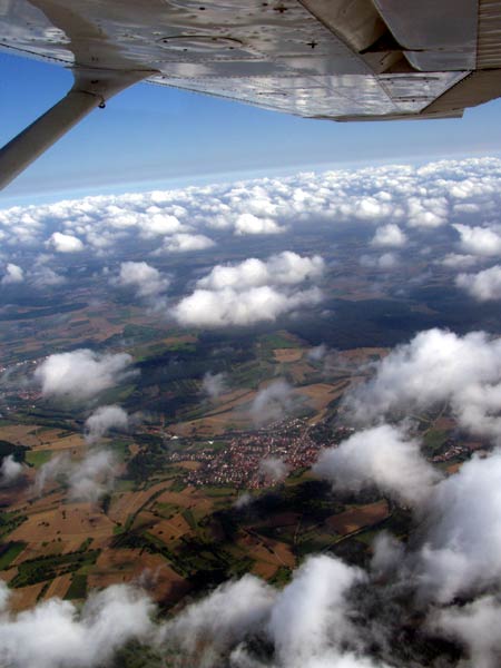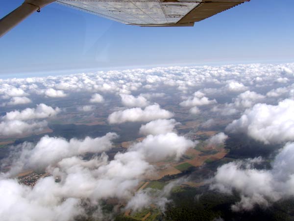 Mitte August 2005 - ging es vom Flughafen Stuttgart aus vormittags nach Bitburg und nachmittags wieder zurück. Natürlich hab ich auch dabei wieder geknipst wie blöde. Besonders schön fand ich, daß wir unterwegs tatsächlich über den Wolken waren, aber sieh selbst. Nachfolgend eine kleine Auswahl der vielen Bilder von unterwegs. Und immer noch gilt - in der Luft geht meine Orientierung gegen Null. |
