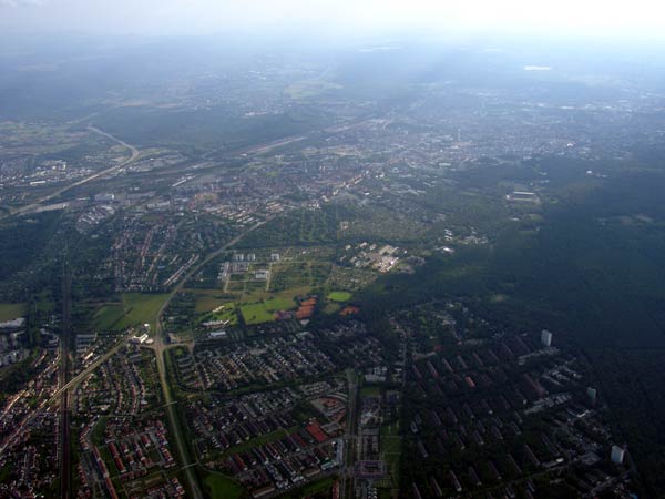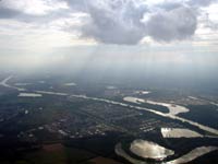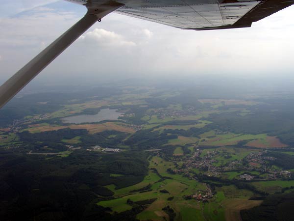 - Seite 2 - Der Rückflug Die hübschen Schäfchenwolken vom Hinflug waren weg, dafür war's überwiegend diesig, die Wolken hatten wir über uns und zwischendurch gab's ordentlich Sonnenschein. |