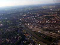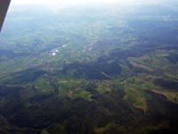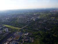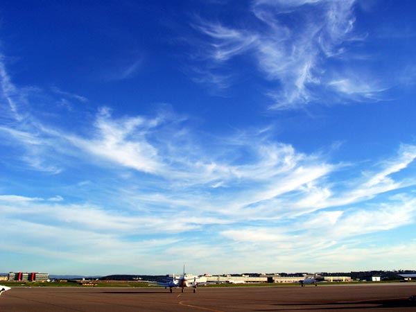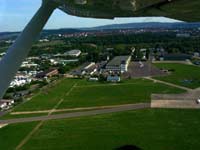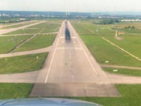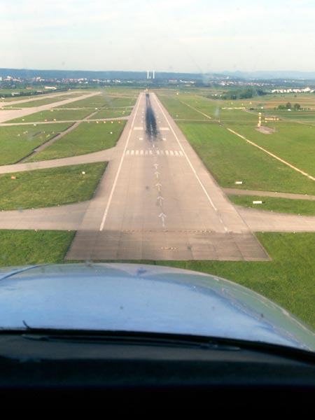 Mitte: Rollbahn kurz vor der Landung - dahinter die Türme des