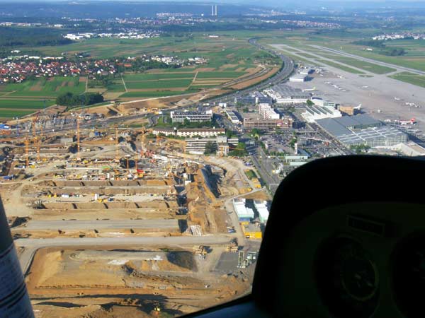 Links: Zankapfel Messebaustelle beim Stuttgarter Flughafen