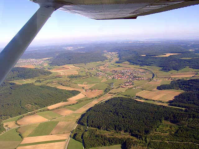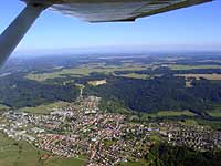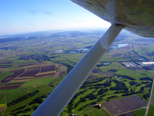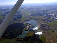 Am 4. September 2003 durfte ich mit einem Freund in einer kleinen Cessna F 152 II mitfliegen - die war so richtig klein - und eng. Es war eine Supersache - mit einem Flug in den großen Teilen nicht zu vergleichen. Wir waren über eine Stunde in der Luft und die Zeit verging wie nix. Während des Flugs hab ich geknipst was das Zeug hält - hier eine kleine Auswahl an Bildern. |