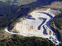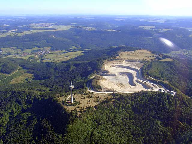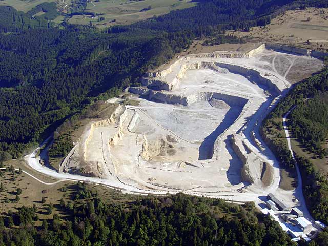 | Links und Mitte: ein Steinbruch von oben