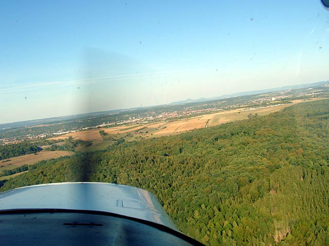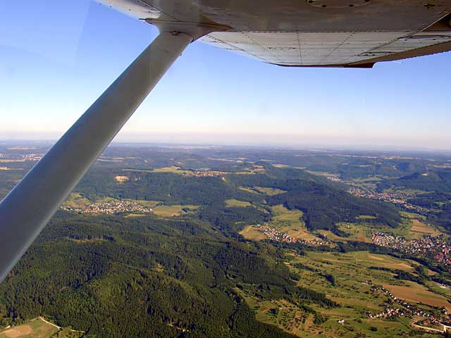 Rad der Cessna | Rechts: die Ruine des Hohen Neuffen |