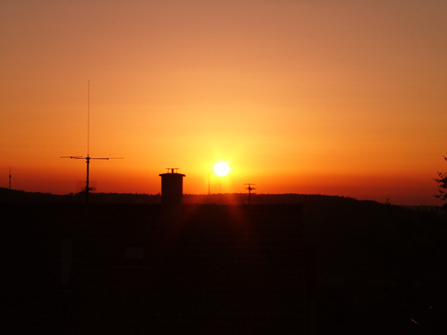 Sonnenuntergang über nachbarschaftlichen Dächern