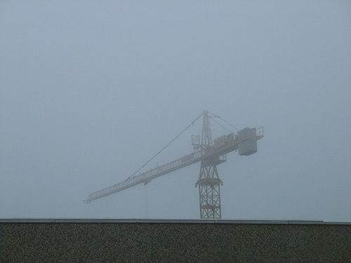 Kran im Nebel am 15.7.2002