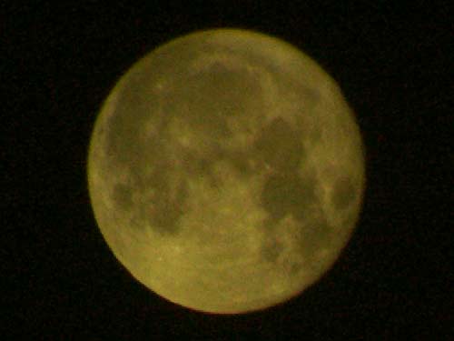 der Mond am 24.08.2002 gegen 2:40 h (mit Gelbfilter) durch ein Fernglas, eine nicht ganz einfache und recht wackelige Angelegenheit - Idee abgeguckt bei: siehe gelinkt/digifoto