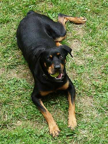 Rottweiler - ein recht netter wohl - der Hund von Nachbarn einer Freundin. Aus sicherer ;-) Entfernung vom Balkon aus, bei der Urlaubspflege der Blumen, erwischt.