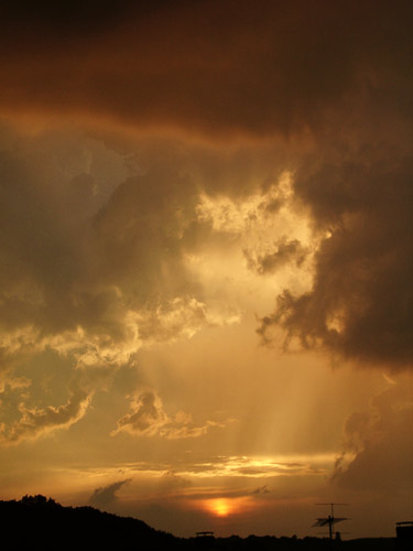 um 20:04 h - jetzt krieg ich an meinem Dachfenster die ersten Tropfen ab und fliehe...