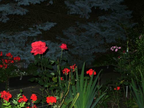 ein Teil des Vorgartens unserer Nachbarin bei Nacht - durch lange Belichtungszeit