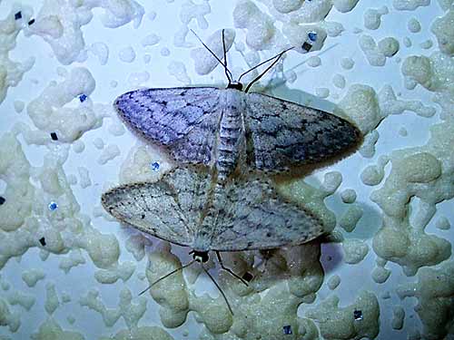 2 Falter - was treiben die da? - an der Tapete in einer dunklen Flurecke,
