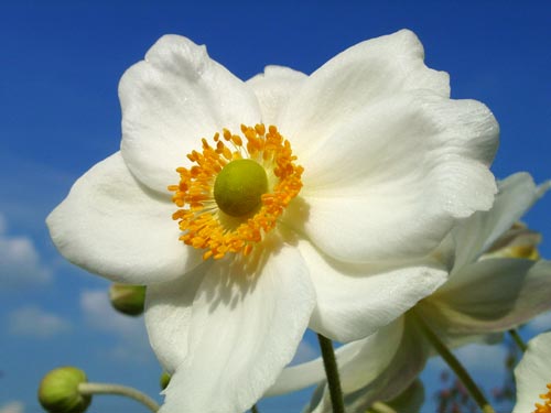 Anemonenblüte unter blauem Himmel