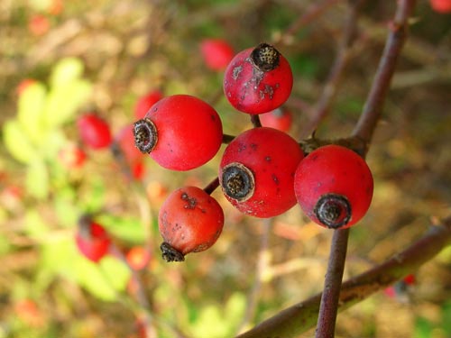 Hagebutten am späten Nachmittag eines sonnigen Herbsttages