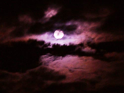 Wolken um den Mond - Rotfilter, Rot verstärkt, Neonlicht-Weißabgleich, ISO 180