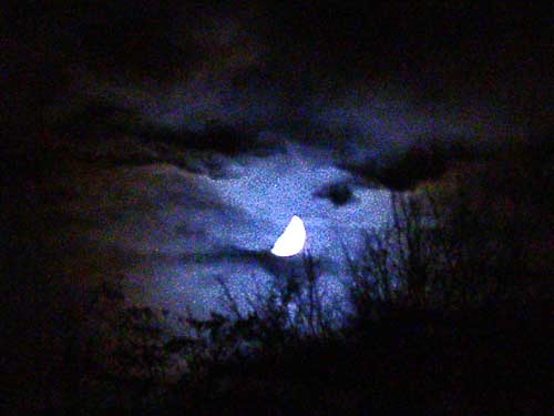 eines meiner Lieblingsmotive - der Mond in Wolken - hier direkt über Baumwipfeln