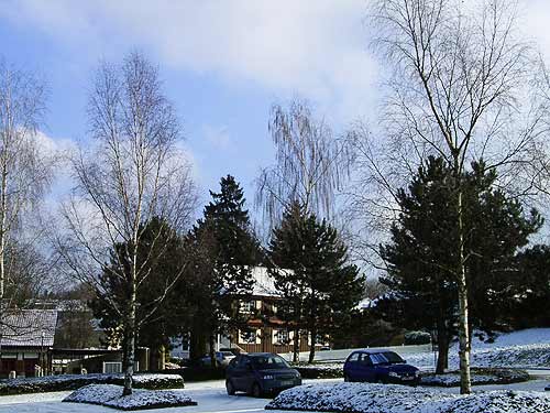ein sonniger Winternachmittag auf einem Friedhofsparkplatz