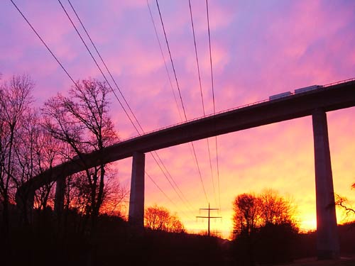unter dem Autobahnzubringer im Sonnenaufgang des 21. Januar 2003