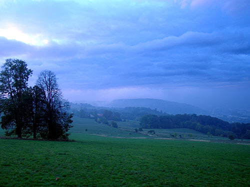An einem diesigen Tag kurz vor Sonnenuntergang