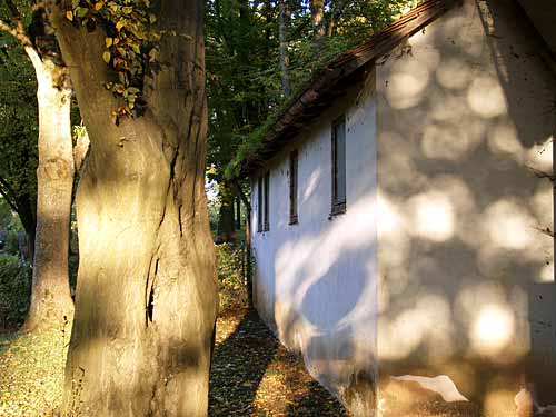 Lichtspiele an der Rückseite der alten Leichenhalle unseres Friedhofs