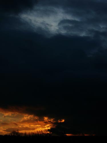 Sonnenuntergang über Stuttgart-Vaihingen im Januar mit Rotfilter