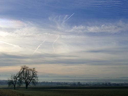 Ein Wintermorgen mit Blick auf die Schwäbische Alb im Januar