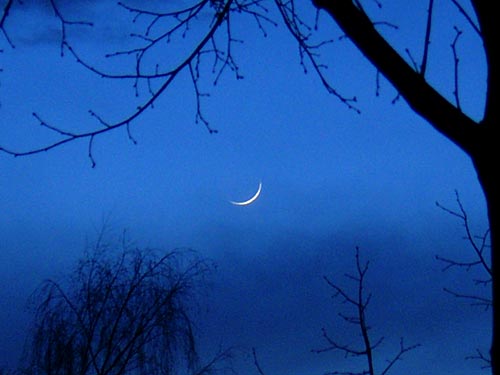 Die Mondsichel schon tief im Westen am Abend des 22. März 2004