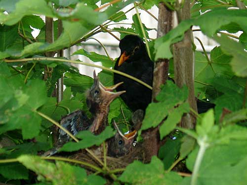 1. August 2004 - hungrige Mäuler auf unserer Terrasse - inzwischen flügge