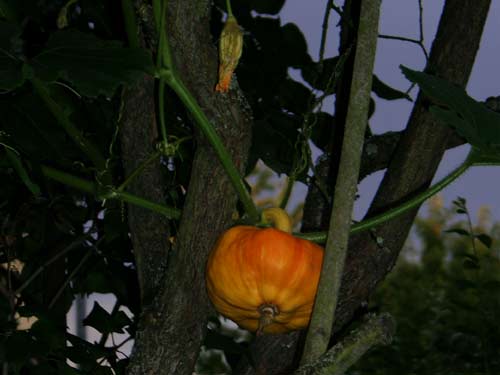Kürbis im Flieder - ein Hokkaido - aus einem Kern gezogen