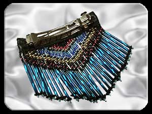 es sind Glasperlen - im Bastelladen sollten sie zu finden sein. Material: - ein Päckchen schwarze Indianerperlen - je ein Päckchen pink, rosa, silber, hellblau, dunkelblau, rot und orange Perlen (Ø = 2,5 mm) - ein Päckchen Tubes (diese Stifte) ca. 30 mm lang, Ø = 2,5 mm - ein Stück schwarzes Leder ca. 90 x 14 mm - eine Haarspange ca. 8 cm (Bastelladen) - schwarzer Nylonfaden (Anglerschur ist zu dick) Werkzeug: Nadel und Schere |