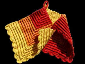 3 Maschen in die mittlere Masche fertig ist der Topflappen wenn das