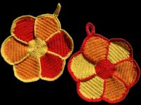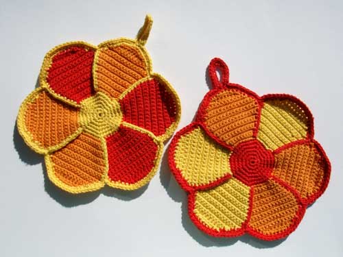 Topflappen häkeln mal ehrlich wer hat als Kind im Handarbeitsunterricht, so denn sie/er welchen hatte oder gar noch haben mußte, nicht darüber abgekotzt also ich schon. Doch nichtsdestotrotz häkel ich die Dinger nun ganz freiwillig, weil einfach recht nützlich. Und wer sich noch an Luftmaschen und feste Maschen erinnern kann kriegt die hier beschriebene Variante problemlos hin. |