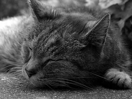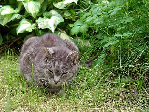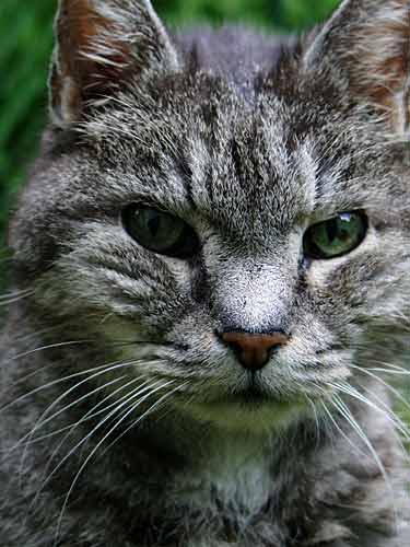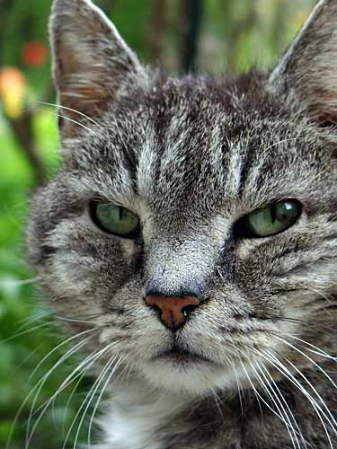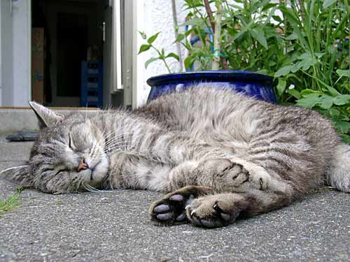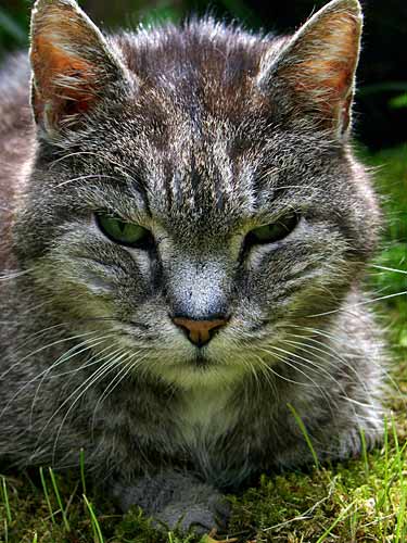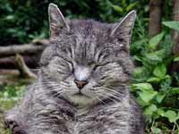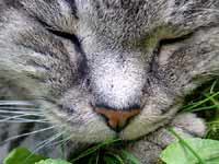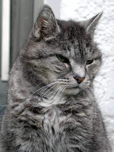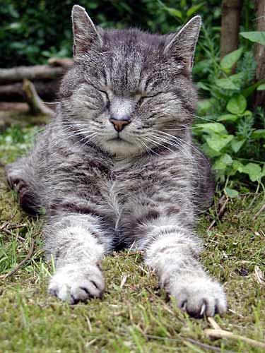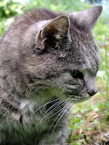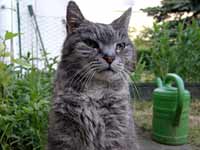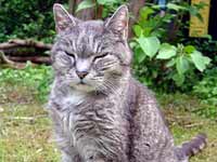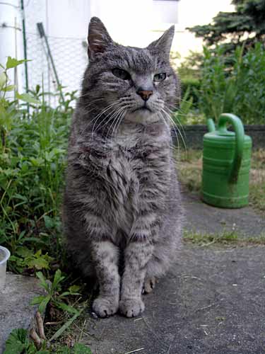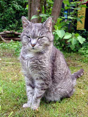 Karlchen, Karli, Hasi oder auch Hasimuck genannt. Gehört hat er auf alle Namen wenn er Bock zu hatte, wenn nich - auf keinen. Über 16 Jahre lang war er kerngesund, abgesehen von der Kastration, einigen Impfungen und zwei leichten Kampfverletzungen mußte er nie zum Tierarzt. Das änderte sich im Spätsommer 2004, er mußte häufig kotzen und das Zeug stank bestialisch - Helicobakterbefall - wahrscheinliche Ursache dafür: Essensreste im Garten der Nachbarin. Diese hatte über Jahre hinweg die Hunde einer anderen, inzwischen verstorbenen, Nachbarin damit gefüttert. Die Hunde waren weg, doch die Essensreste gab es noch immer und Charlie, der sowas zuhause mit dem Arsch nicht angesehen hätte, trat die Nachfolge an. Das Ergebnis war ein stark angeschlagenes Verdauungssystem und sauteures Diätfutter für den Rest seines Lebens. Da die Nachbarin kein Einsehen hatte, haben wir, bevor Charlie nach draußen durfte, nachgesehen und die Sauereien entsorgt. Alles haben wir nicht erwischt, denn sie hatte begonnen ihre Essensreste unter den Hecken in der Nachbarschaft zu verteilen, was ich allerdings erst vor kurzem erfahren hatte. Am 2. Juni dann hatte er einen Anfall, er konnte sich nicht bewegen, lag völlig verkrampft da und schrie - also ab zum TA. Hier stellte sich raus er hat eine Arthrose und bekam eine Spritze, die er nicht gut vertragen hat. Also wieder zum TA - eine Blutuntersuchung ergab eine dramatische Verschlechterung seiner Nierenfunktion. Er bekam Aufbauspritzen und Medikamente gegen den Durchfall und für die Nieren. Er erholte sich auch wieder, der Durchfall verschwand, doch mit den Nieren ging es bergab. Er sollte nicht mehr nach draußen, da es hätte passieren können, er kommt nicht mehr nach Hause. Jetzt sperr mal einen Freigänger ein - jedes bißchen Energie hat er darauf verwendet nach draußen zu gelangen. Also haben wir den Vorarten eingezäunt, damit er wenigstens noch an seine Lieblingsplätzchen konnte. Ihn vom Ausbüchsen abzuhalten war nun nicht mehr besonders schwer, er war inzwischen blind geworden und konnte selbst einen Hasenzaun nicht mehr überspringen, aber wenigsten konnte er raus. Dreimal bekam er dann noch Aufbauspritzen, weil er nicht mehr fressen wollte, das ging dann jedesmal einige Tage gut, dann stellte er die Nahrungsaufnahme wieder ein. Bis er Sonntag abend, es war der 11. Juni, nicht mal mehr trinken konnte - er wollte zwar, doch es ging nicht. Da war klar - Montag kommt der letzte Gang zum TA und so war es auch - die Nieren hatten aufgegeben. Hier einige Bilder aus den letzten Wochen seines Lebens. Um ein Bild größer zu sehen - draufklicken. |