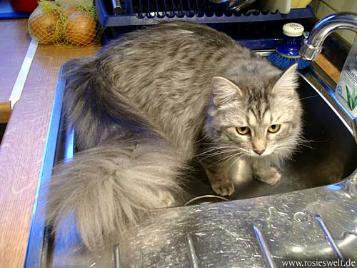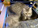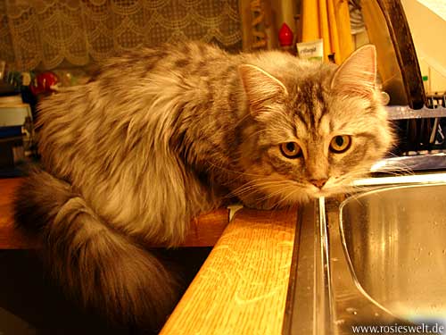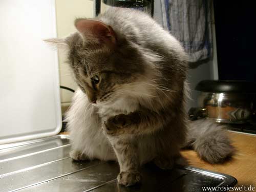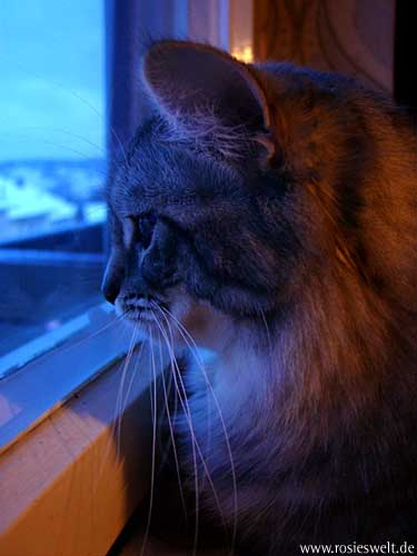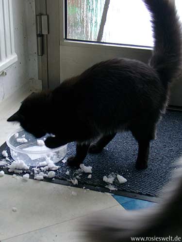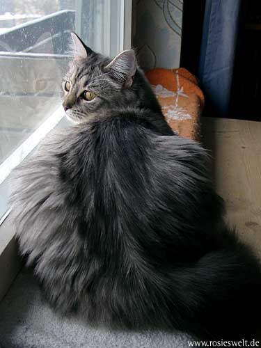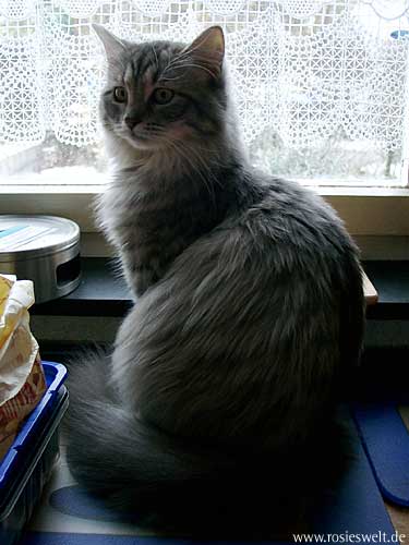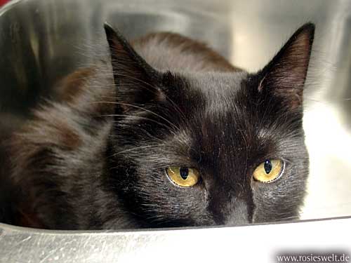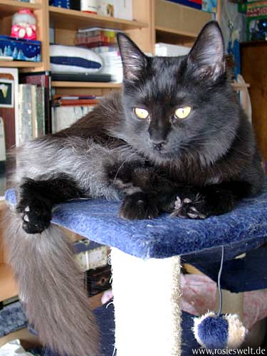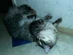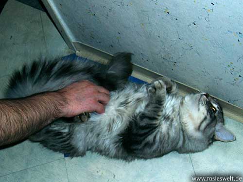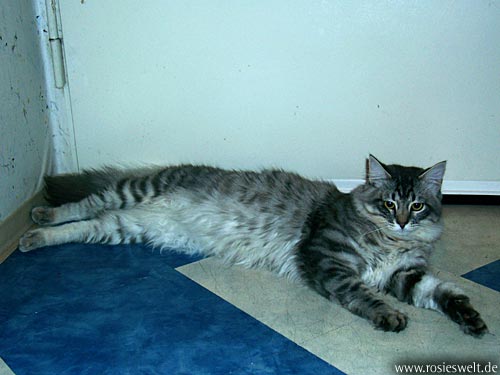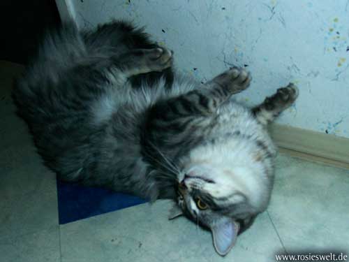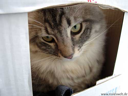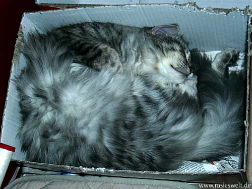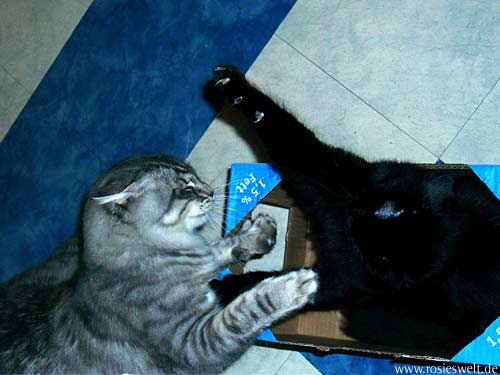 | Seite 8 Ende Januar wurden unsere Rabauken kastriert, den Eingriff haben sie gut überstanden. Allerdings wollen die beiden Mädels noch nicht so recht rumbalgen wie Easy das gern hätte – so handelt er sich bei manch einem Spielversuch Ohrfeigen ein, wird angebrummt und angefaucht. Zieht er dann frustriert ab, wird ersatzweise ein Karton randaliert. |