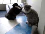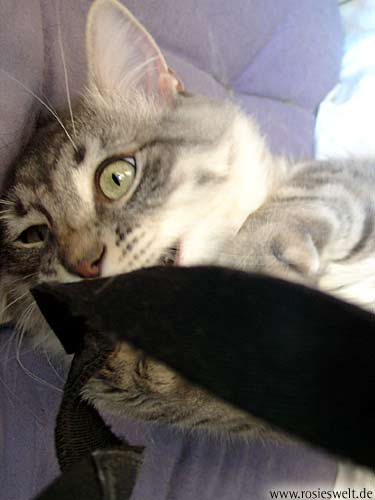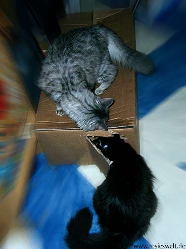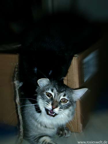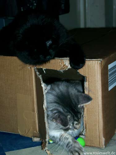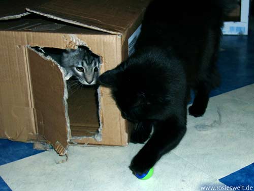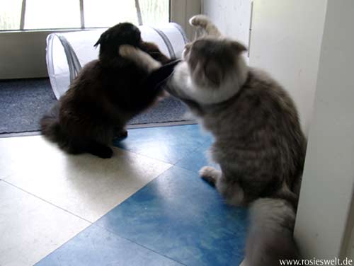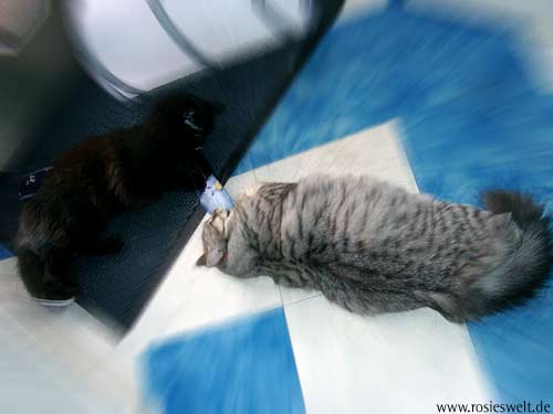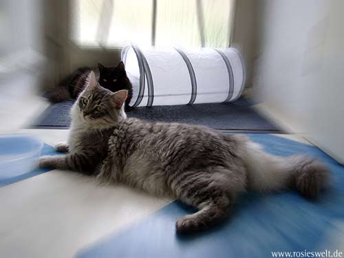 | Seite 10 Nun ist unserer Trio – laut Impfpass 1. April – fast ein Jahr alt, sie sind nun wohl ziemlich ausgewachsen und beglücken uns nach wie vor mit ihren Späßen. Spielen und Toben stehen täglich auf dem Programm und sie finden immer wieder neue Sachen mit denen sie durch die Bude fegen. |