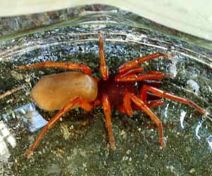 Diese hier mag's (glaub ich) gerne Dunkel, beim Umräumen der Terrasse unter Gehwegplatten waren welche dieser Art zu finden. Das Tier auf dem Bild spazierte durch die Küche - recht flink auf eine dunkle Ecke zu - ich war schneller. Hier sieht man sie im Transportglas. Kurz darauf befand sie sich wieder in freier Wildbahn. |
