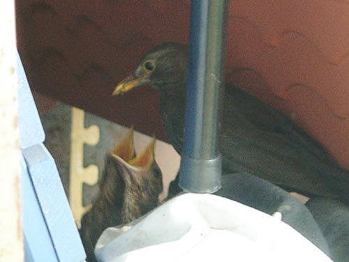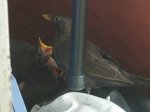 Amselfamilie zum letzten Mal gesehen. Vormittags am 21.5. war